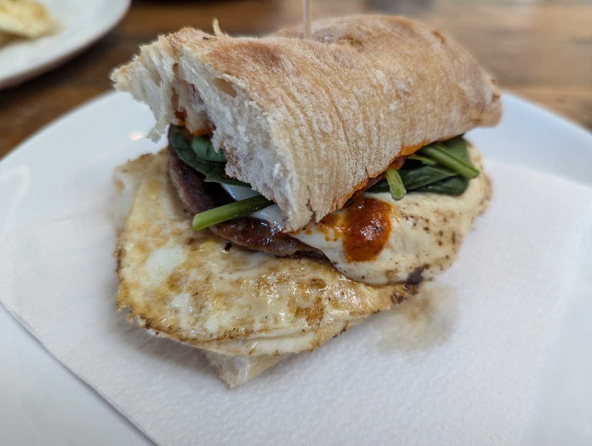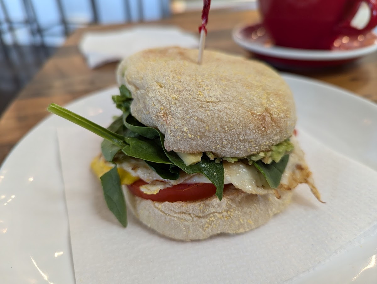 Went for a late breakfast. First time there! Food was great! Sandwiches are made on different bread rolls (so thought was put into each sandwich). Spinach was fresh! Our lattes were delicious! I saw the workers meticulously clean the food shelves during idle moments. Well done, and thanks for making my first visit very nice!