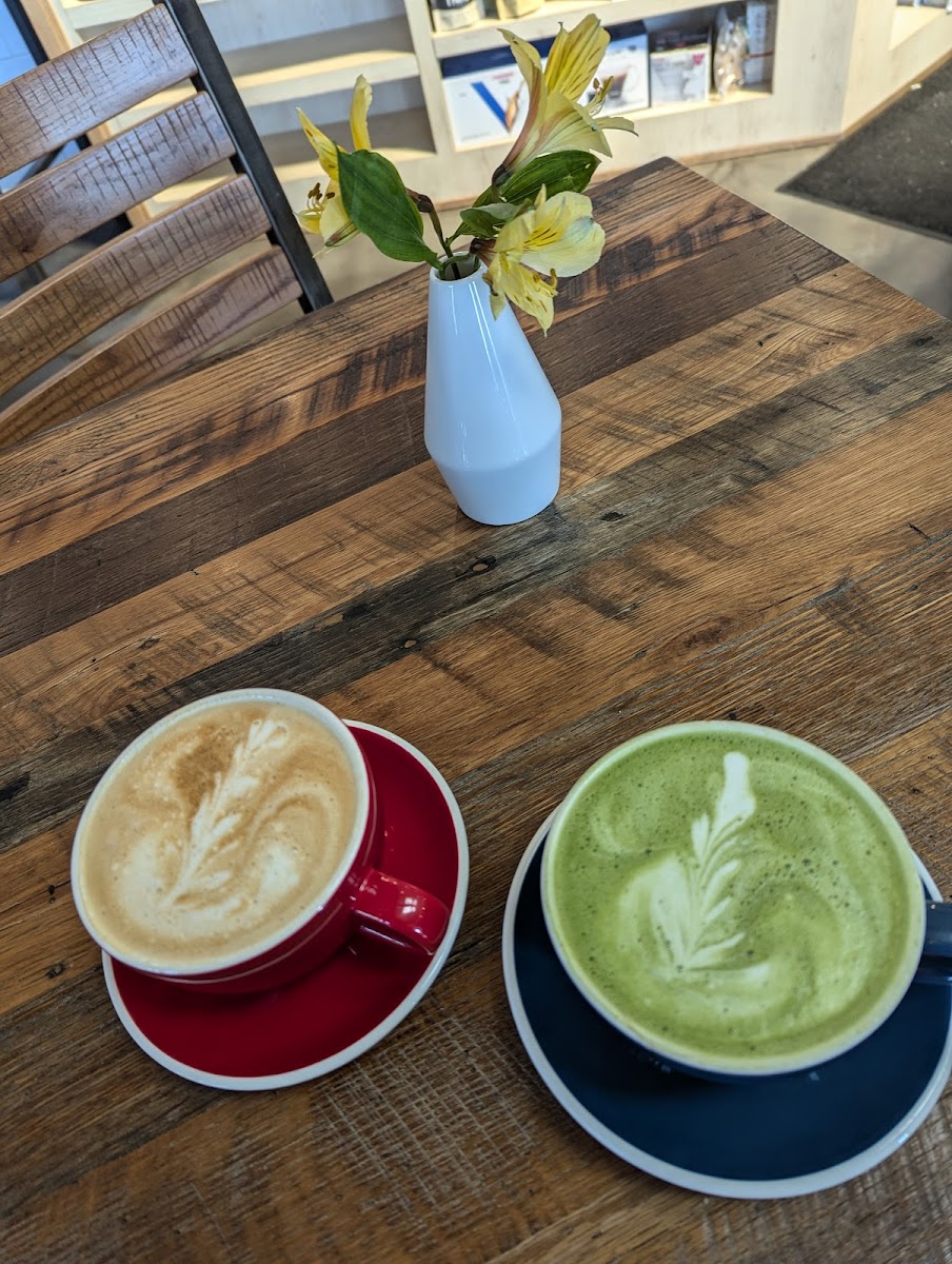 Latte and an eggnog matcha, pictures say it all. They use nice mugs and the space is very comfortable. We will definitely go back